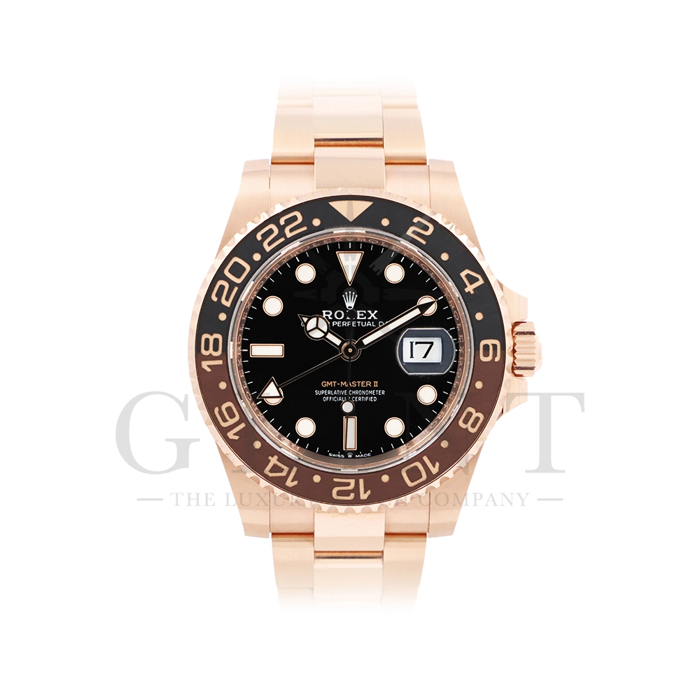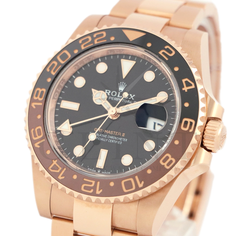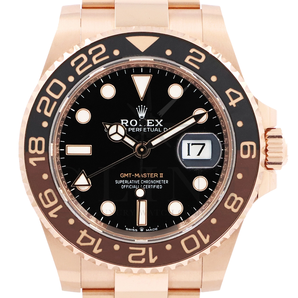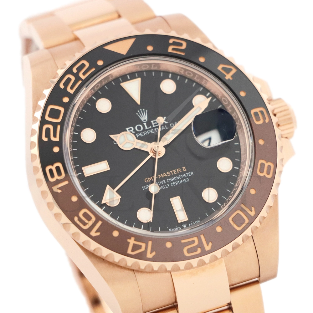こちらはロレックス GMTマスター2 126715CHNRです。素材にはエバーローズゴールドを採用したラグジュアリーモデル。ブラックとブラウンのツートーンカラーベゼルとエバーローズゴールドの相性は見事で、特有の高級感を演出してくれます。ムーブメントには今回のGMTマスターIIの為に開発されたCal.3285を使用。クロナジーエスケープメントを備え、香箱の構造を一新された事で、パワーリザーブが従来の48時間から70時間にグレードアップしており、実用性が高められました。更に進化したロレックス人気モデルで腕元をオシャレに演出してみてはいかがでしょうか。