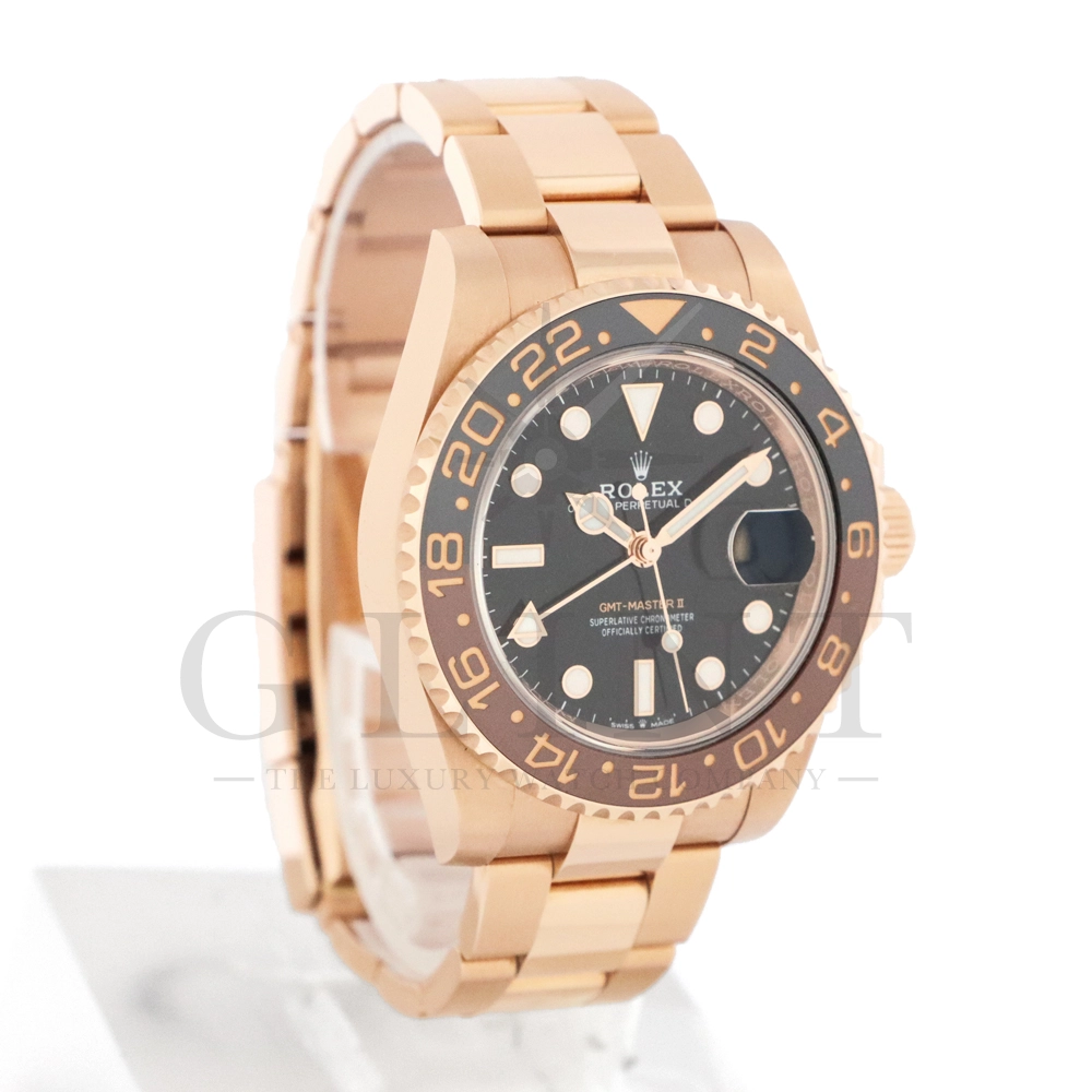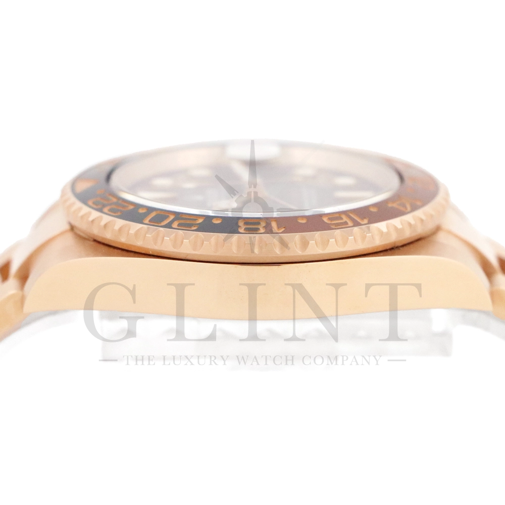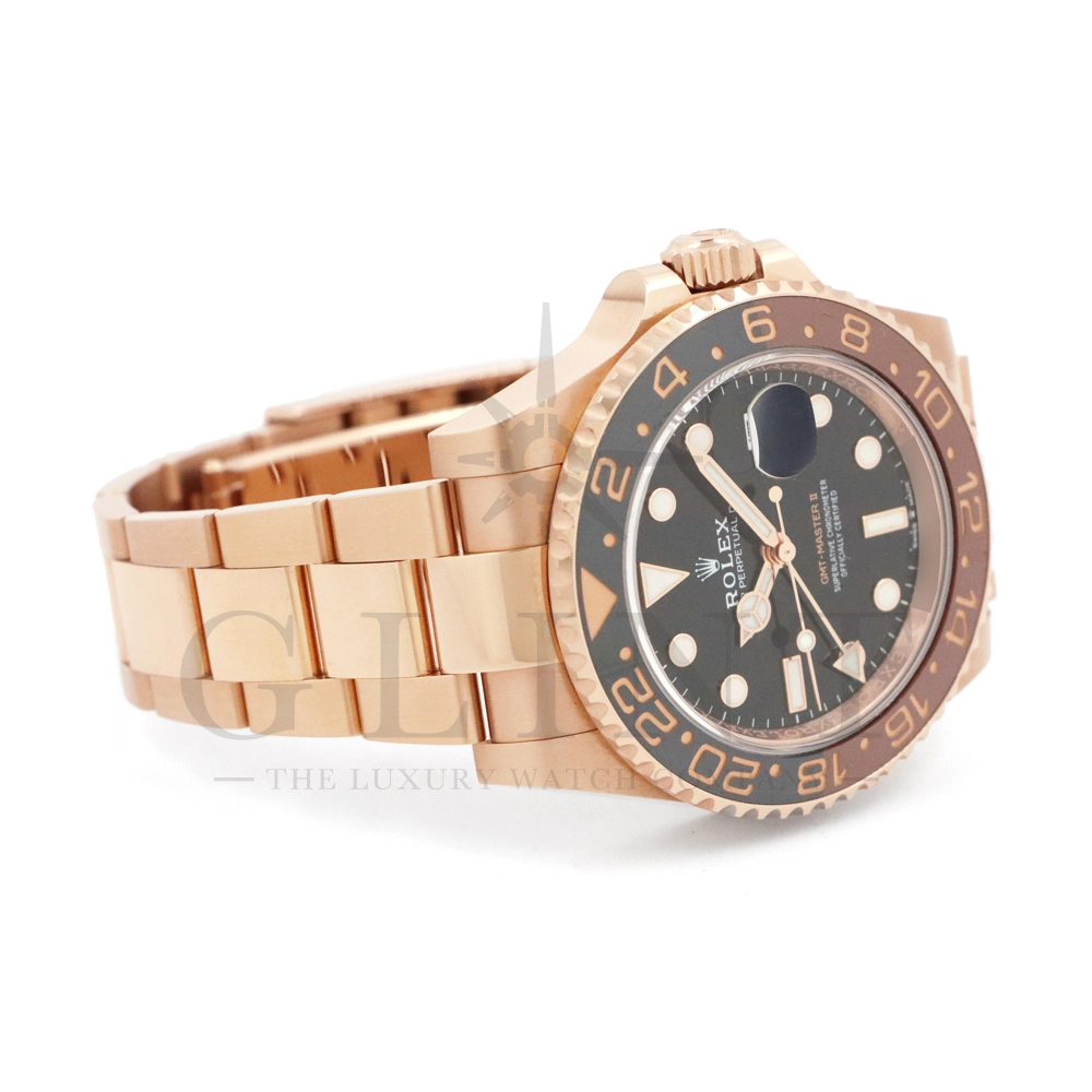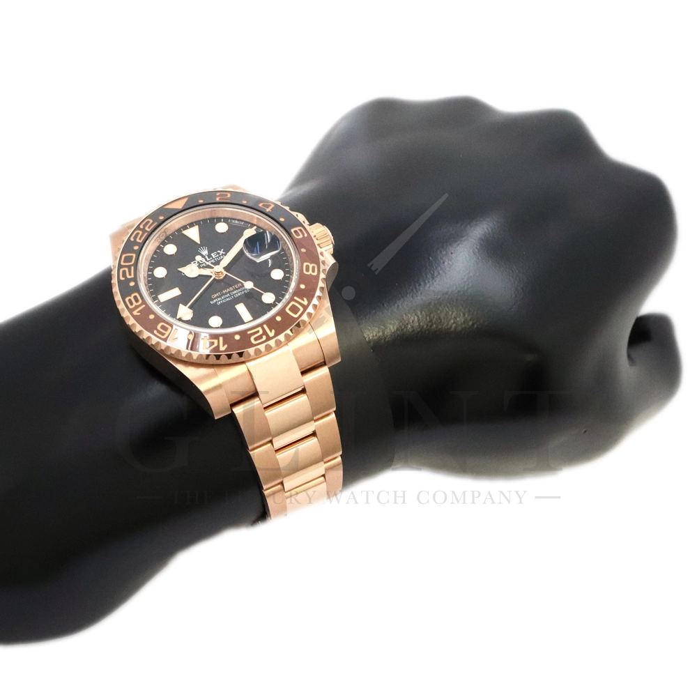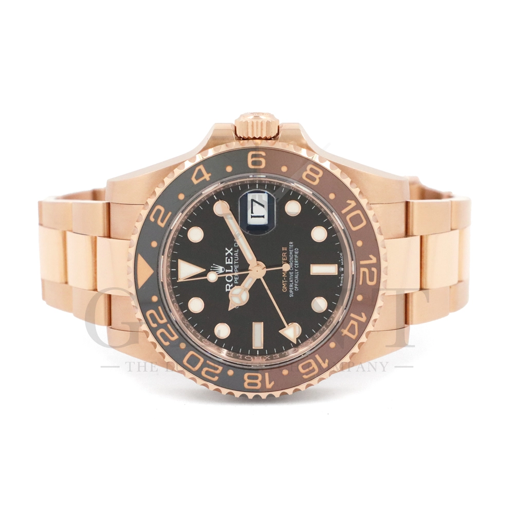 こちらはロレックス GMTマスター2 126715CHNRです。素材にはエバーローズゴールドを採用したラグジュアリーモデル。ブラックとブラウンのツートーンカラーベゼルとエバーローズゴールドの相性は見事で、特有の高級感を演出してくれます。ムーブメントには今回のGMTマスターIIの為に開発されたCal.3285を使用。クロナジーエスケープメントを備え、香箱の構造を一新された事で、パワーリザーブが従来の48時間から70時間にグレードアップしており、実用性が高められました。更に進化したロレックス人気モデルで腕元をオシャレに演出してみてはいかがでしょうか。
