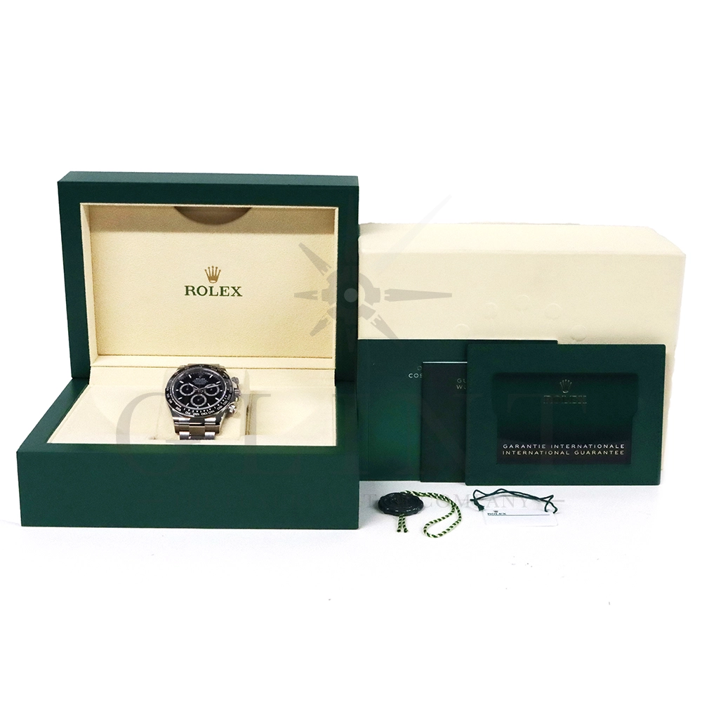 2023年の新作として登場したこちらの126500LNは、前モデルの基本的なデザインはそのままに、マイナーチェンジを施されました。ケースは滑らかな曲線を描いている116500LNに比べ、太く切り立った印象のデザインでよりスタイリッシュに。ベゼルはフチにメタルが採用され、輪郭がハッキリとし、より精悍な印象が強くなっています。また、文字盤はインダイヤル外周部やインデックスが全体的に細くなり、文字盤6時位置の”SWISS MADE”のデザインがSWISS”と”MADE”の間に王冠マークが配されるデザインに変更されました。キャリバーはロレックス社が誇る技術を全て注ぎ込んだ完全自社製ムーブメントcal.4131。クロナジーエスケープメント”や”パラフレックス・ショックアブソーバーなど、ロレックスの最先端技術が搭載されています。また、巻き上げに重要な役割を果たすボールベアリングにも改良が加えられたことで、実用面においてもアップデートされています。これまでのモデルと比較しても、高級感が更に増したロレックスが誇るフラッグシップモデル。ブラック文字盤は男らしく腕元を引き締めてくれ、シックな雰囲気を演出してくれます。