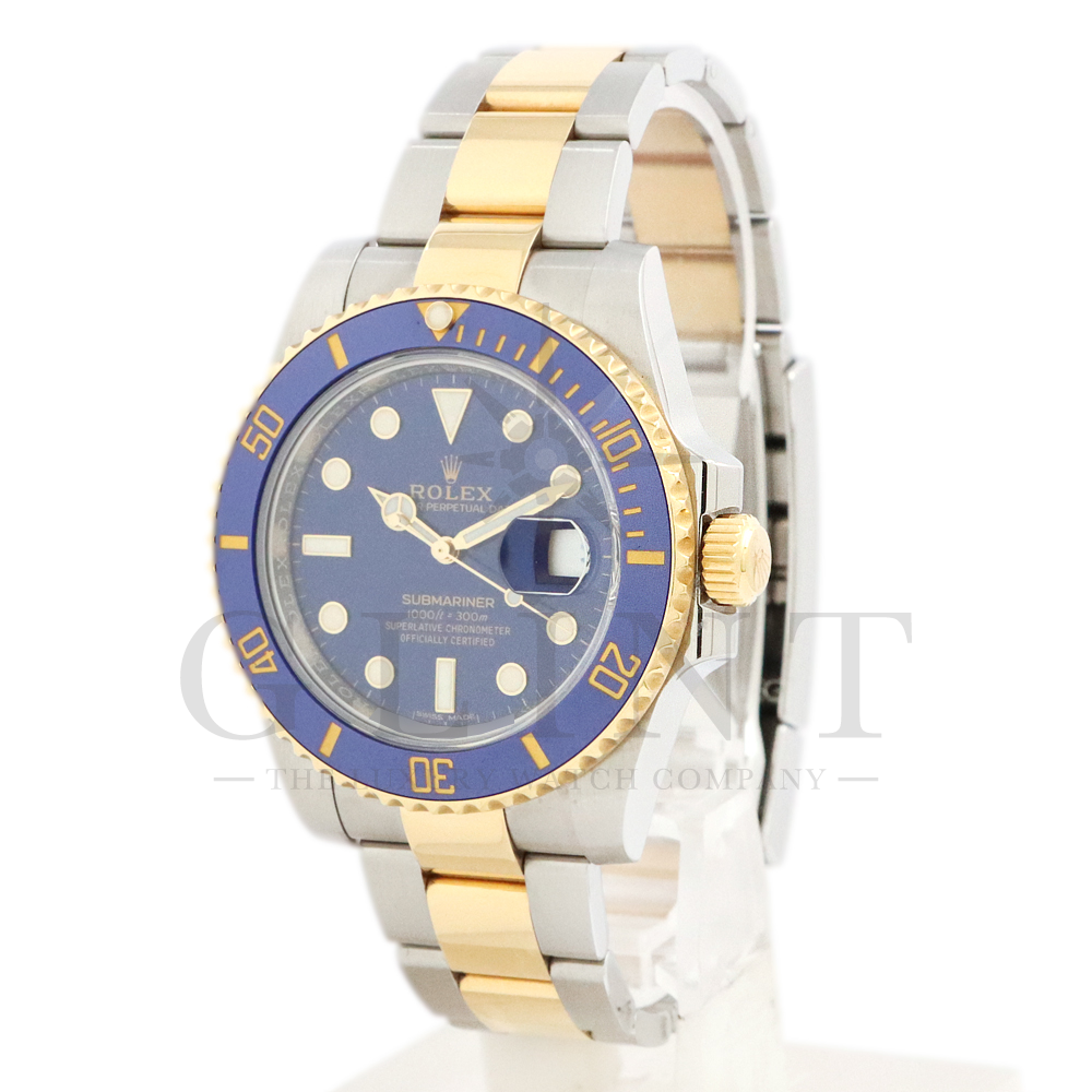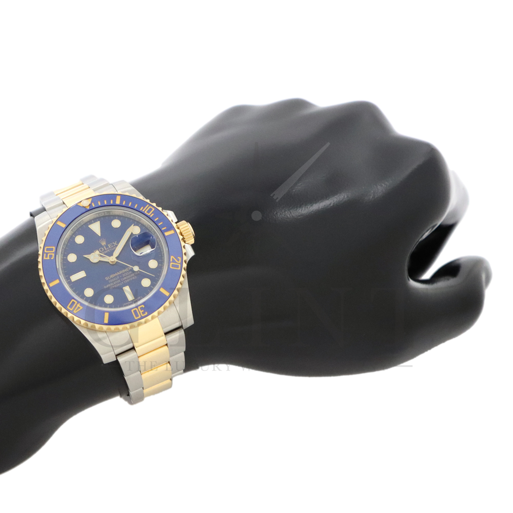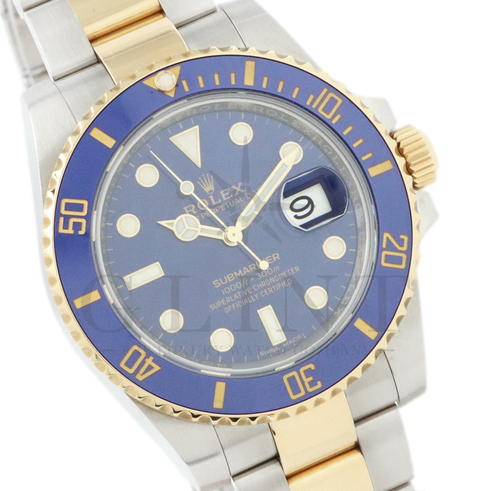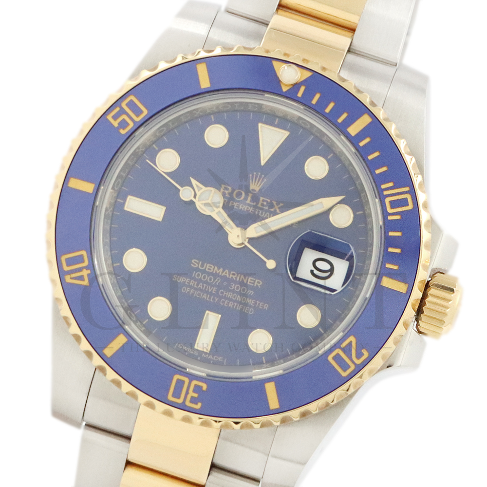 こちらはロレックス サブマリーナー デイト ロレゾールモデルです。通称“青サブ”と呼ばれるモデルは、サブマリーナー・コンビ史上、最も高級感の溢れるデザインと耐久性で確固たる人気を誇ります。オイスタースチール、18Kイエローゴールドの間を取り持つ、ベゼルと文字盤に配された艶有りのブルーカラーが筆舌に尽くしがたい美しさを表現してくれるでしょう。青く発光するクロマライトの夜光との相性も抜群です。今もなお進化し続けるダイバーウオッチは必ずやユーザーの思いに応えてくれる最高の一本です。