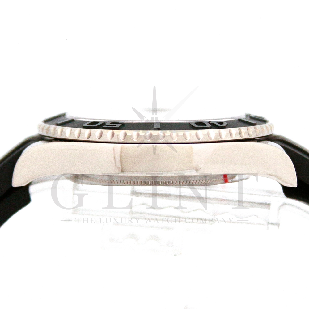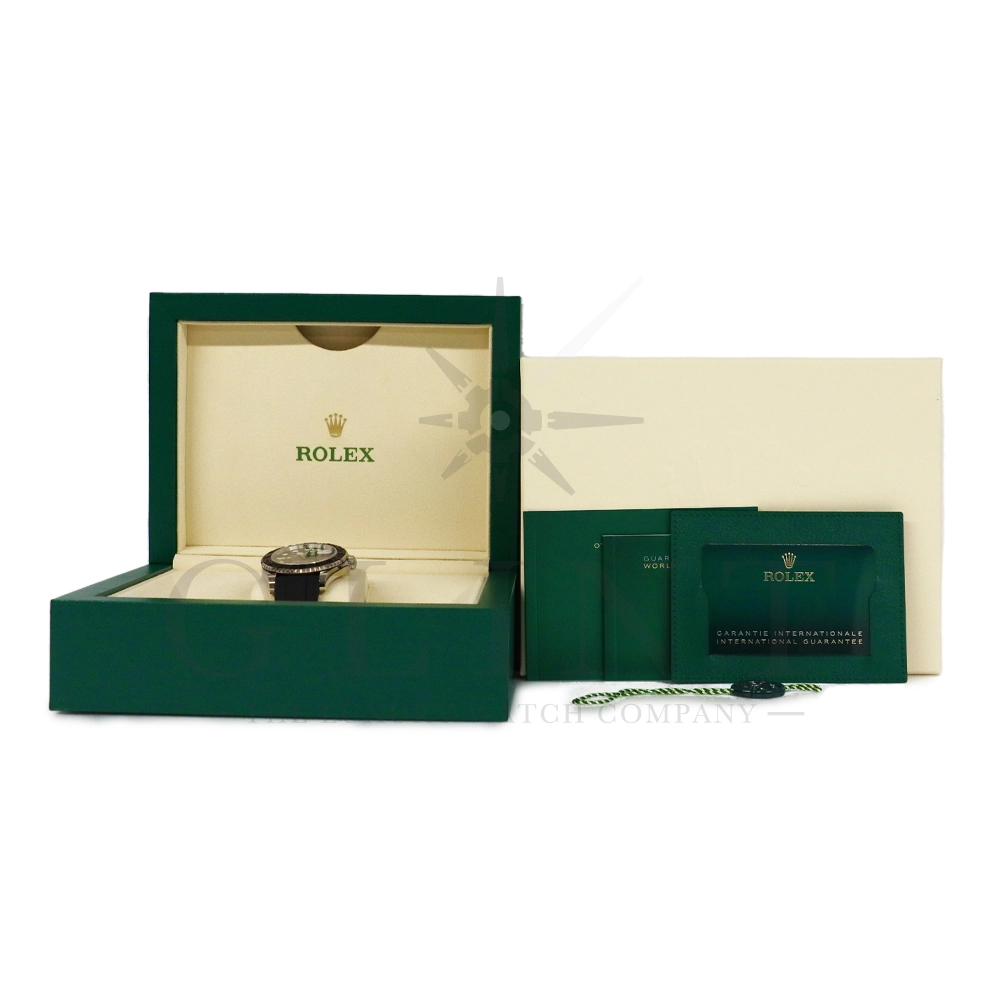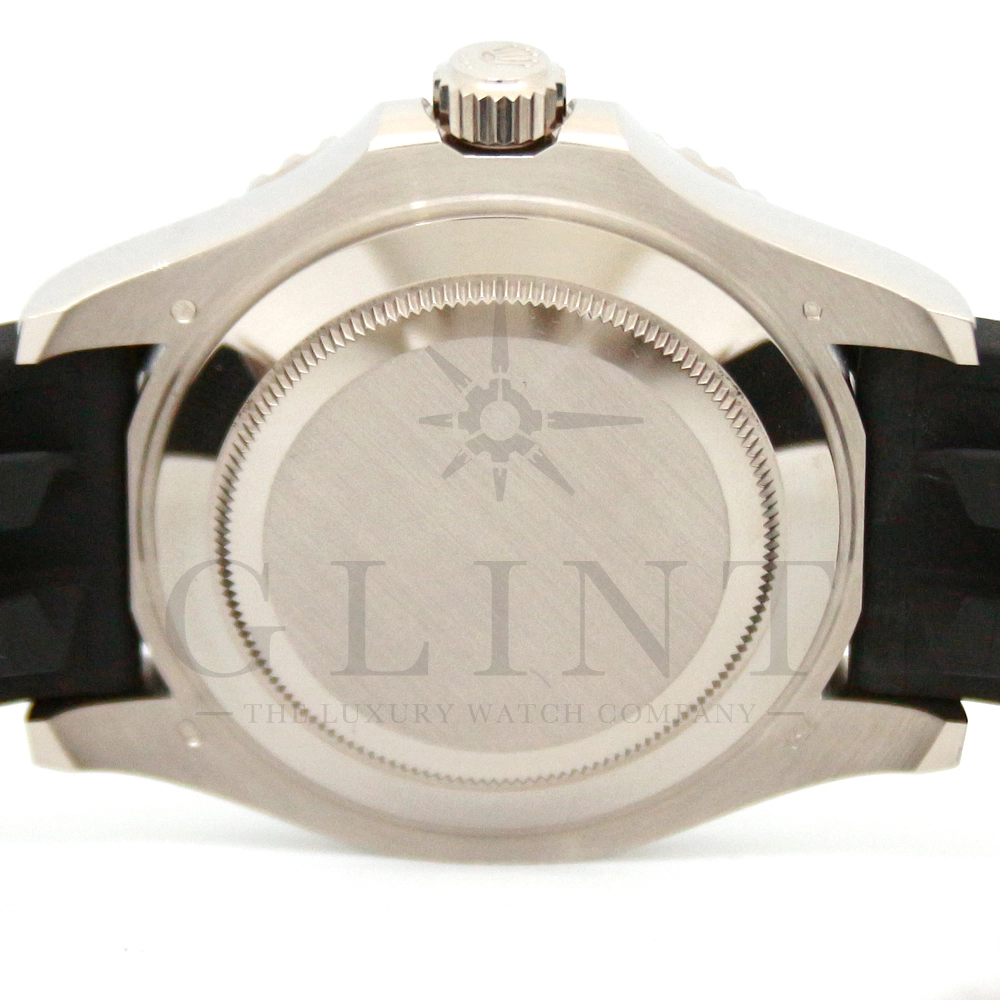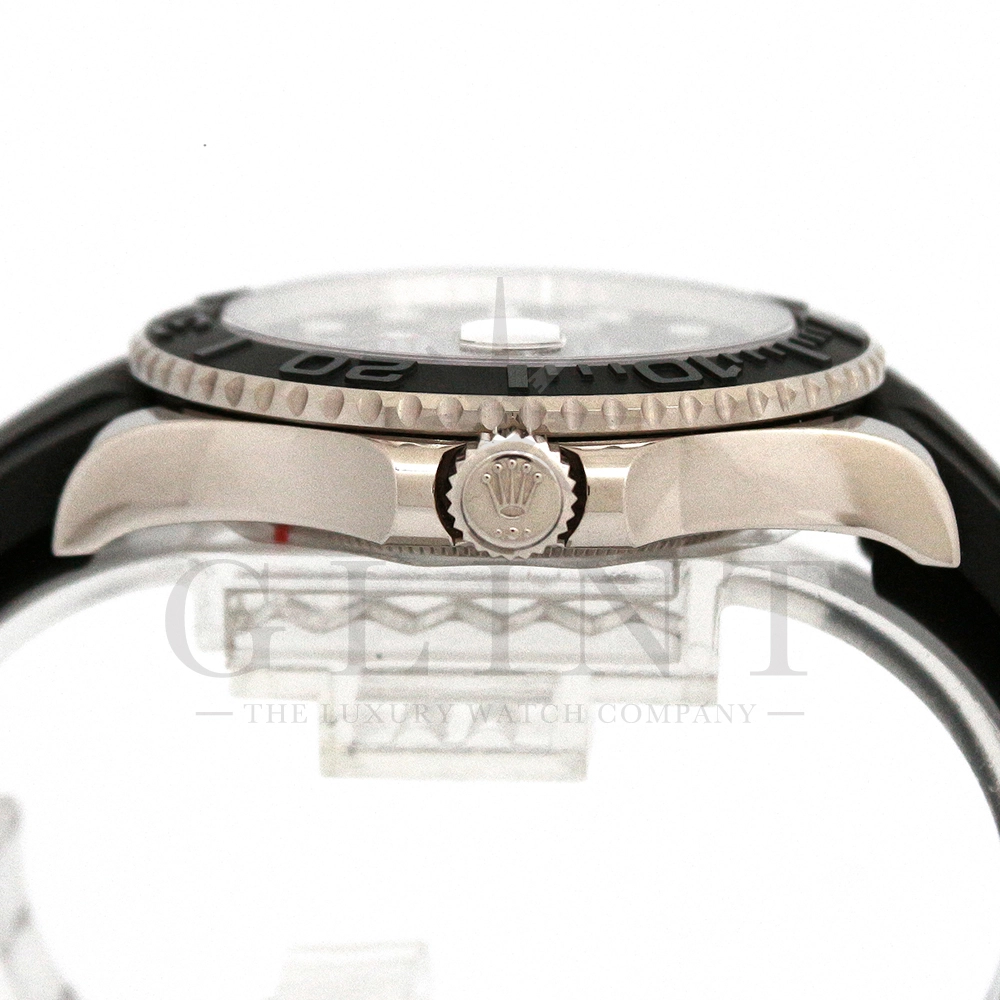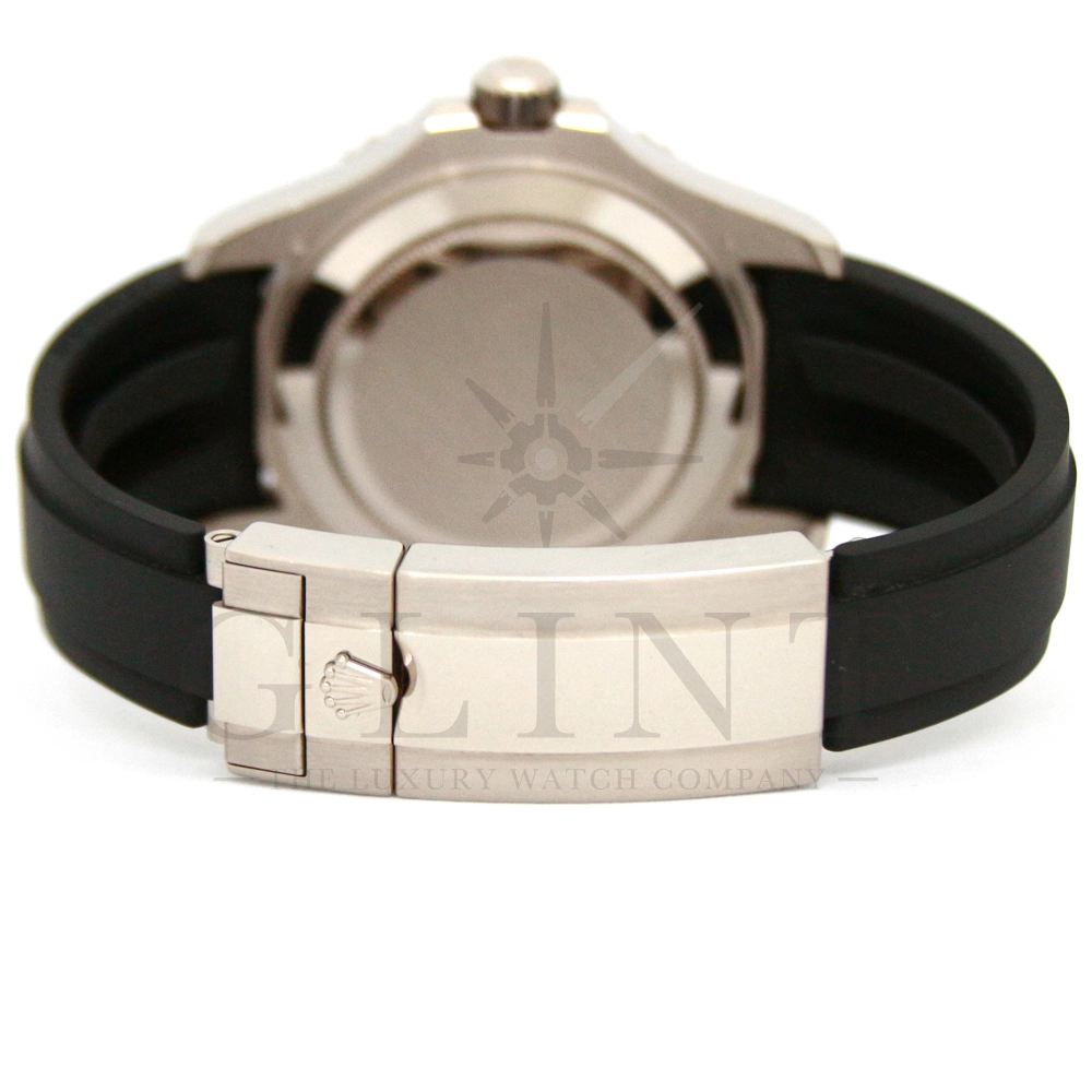 こちらはヨットマスター42 226659です。2019年に発表されたホワイトゴールドモデルのヨットマスター。ケースサイズが42mmにアップし、艶を消したマットなブラックセラミックベゼルを採用した事でこれまでに無い精悍な印象を与えてくれます。ムーブメントには約70時間のパワーリザーブを誇るCal.3235を搭載しており、何時でも日付調整を行う事が可能となりました。ブレスレットにはオイスターフレックスを採用し、軟性のあるチタン・ニッケル合金製ブレードを、しなやかで装着感に優れるエラストマー(人工ラバー)で覆っており、極めて高い耐久性と装着感を実現しております。従来のヨットマスターとは一線を画した高級感を味わえる一本です。