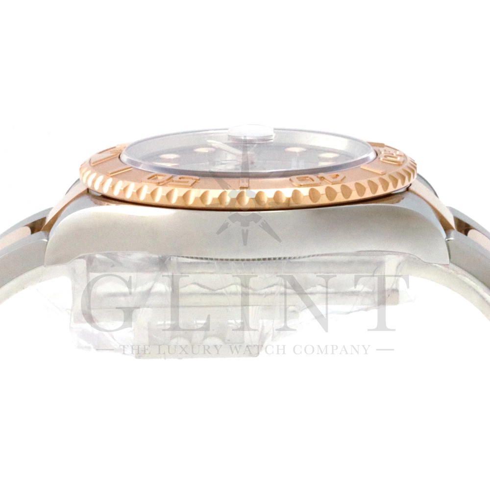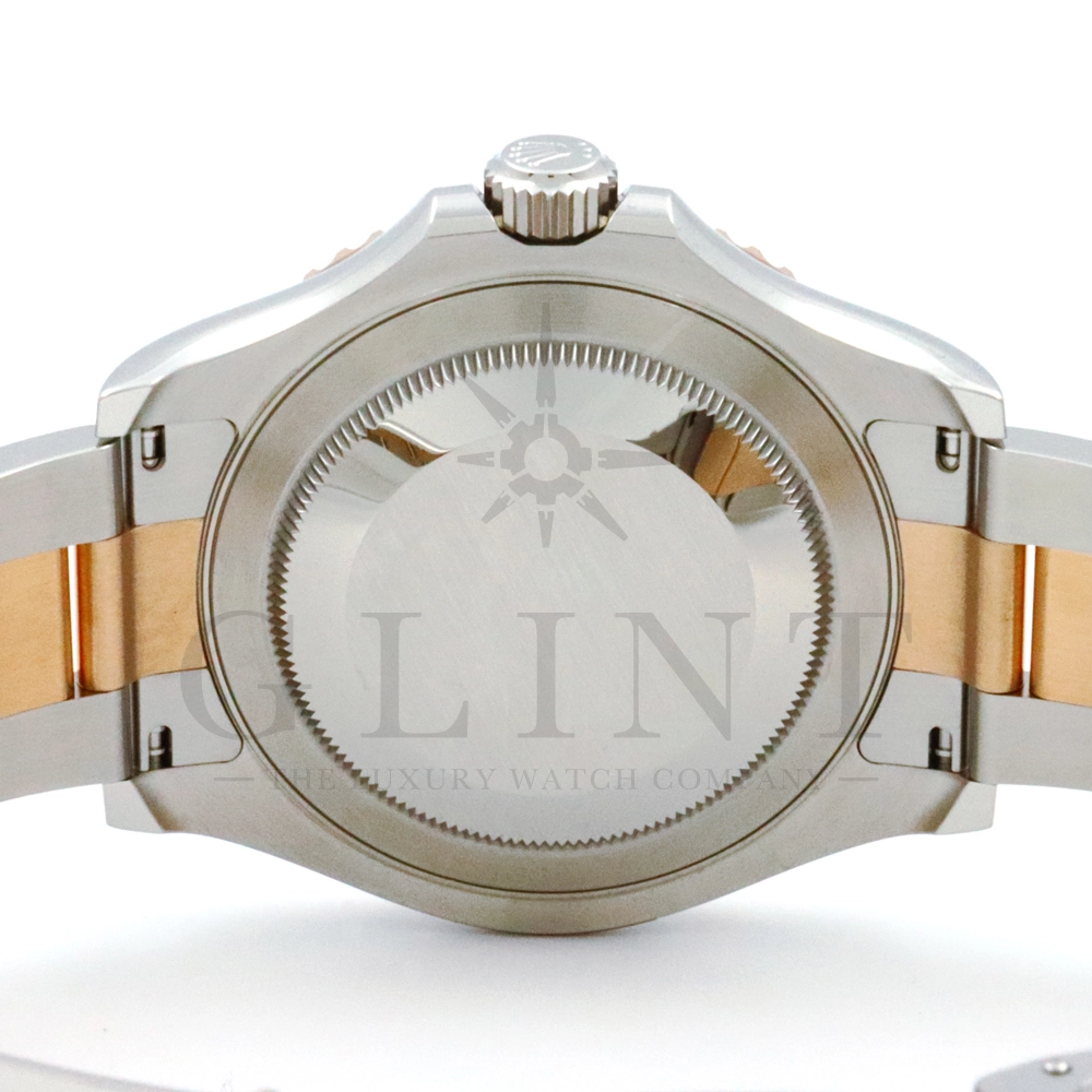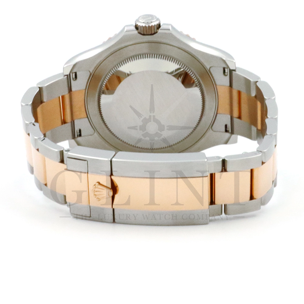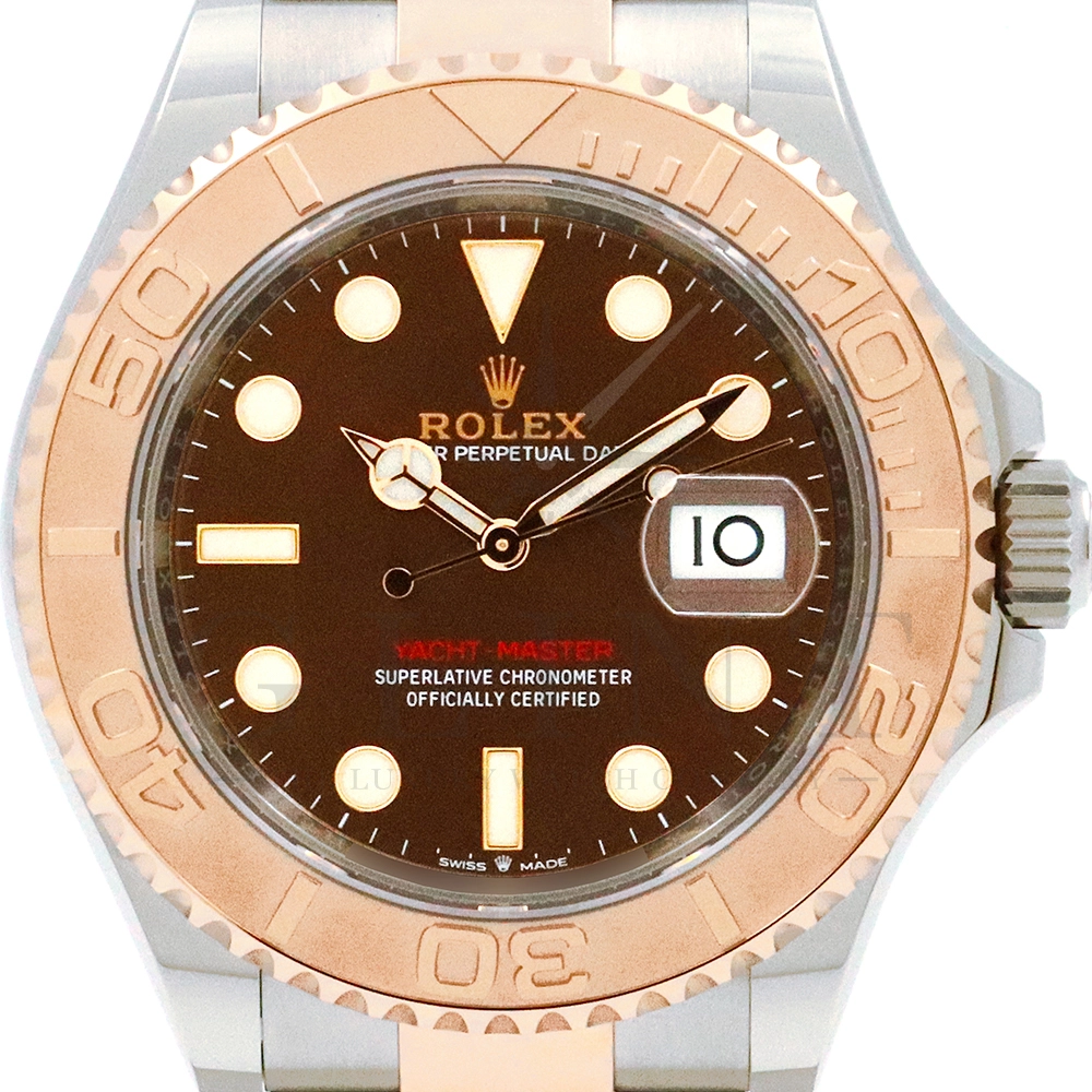 こちらはヨットマスター40 126621です。2019年に発表されたオイスタースチールとエバーローズゴールドのロレゾールモデルです。以前のモデルからは6時位置に王冠マークが足され、キャリバーがCal.3135からCal.3235に変更されました。ロレックスが特許を取得した“クロナジー・エスケープメント”と呼ばれる新しい脱進機を使用し、エネルギー効率を高めパワーリザーブが約70時間まで延長されております。更に進化したロレックスの人気モデルで腕元をラグジュアリーに演出してみてはいかがでしょうか。