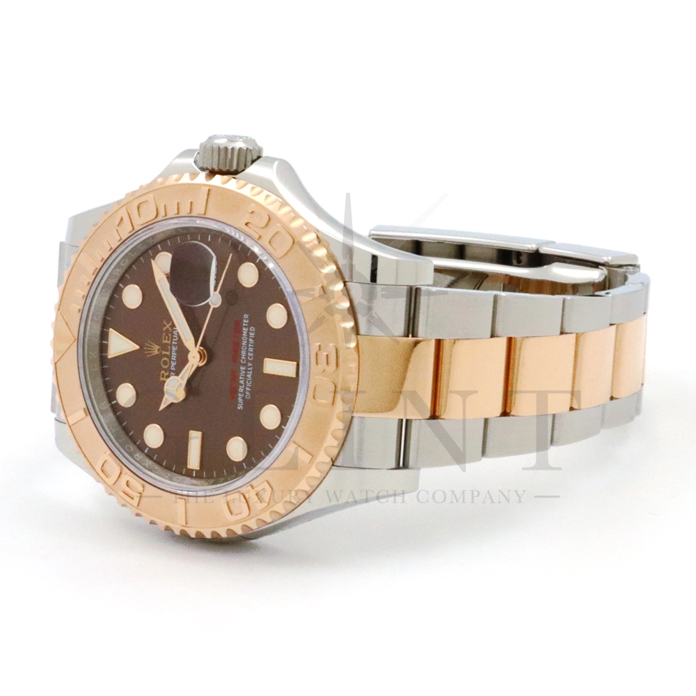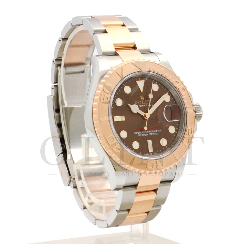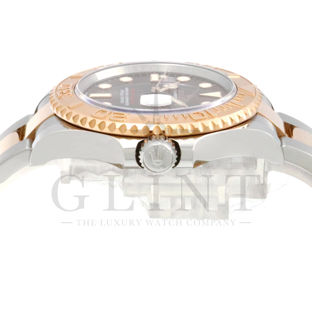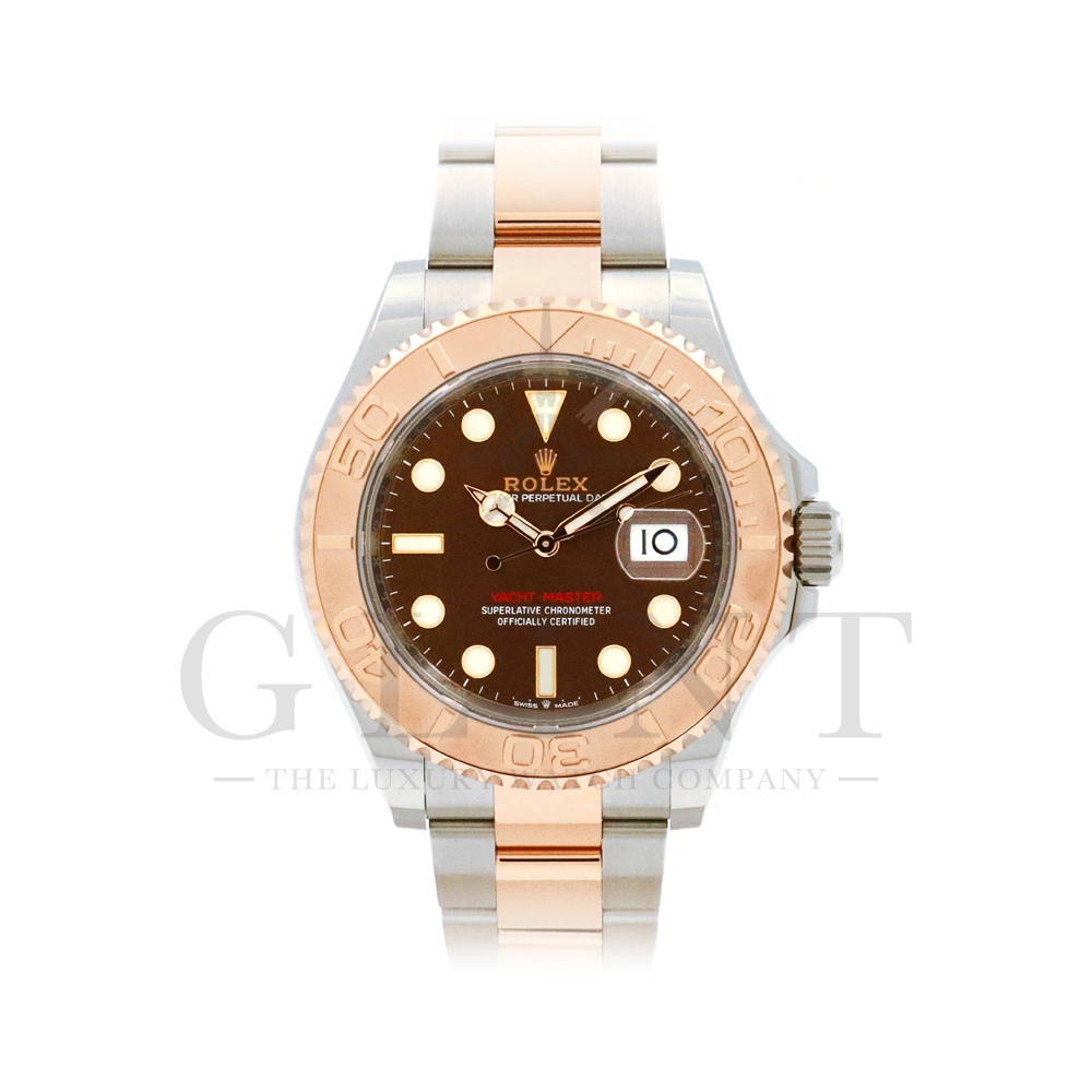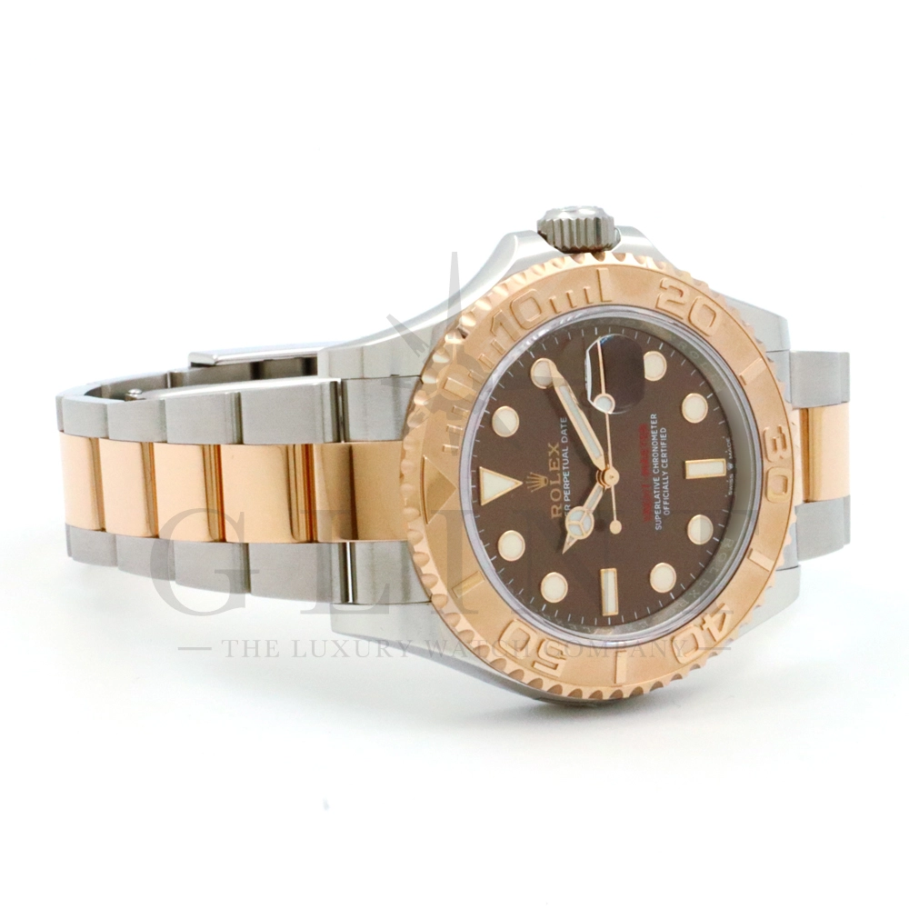 こちらはヨットマスター40 126621です。2019年に発表されたオイスタースチールとエバーローズゴールドのロレゾールモデルです。以前のモデルからは6時位置に王冠マークが足され、キャリバーがCal.3135からCal.3235に変更されました。ロレックスが特許を取得した“クロナジー・エスケープメント”と呼ばれる新しい脱進機を使用し、エネルギー効率を高めパワーリザーブが約70時間まで延長されております。更に進化したロレックスの人気モデルで腕元をラグジュアリーに演出してみてはいかがでしょうか。