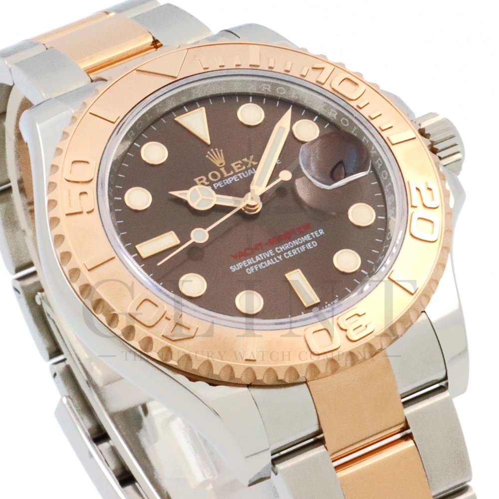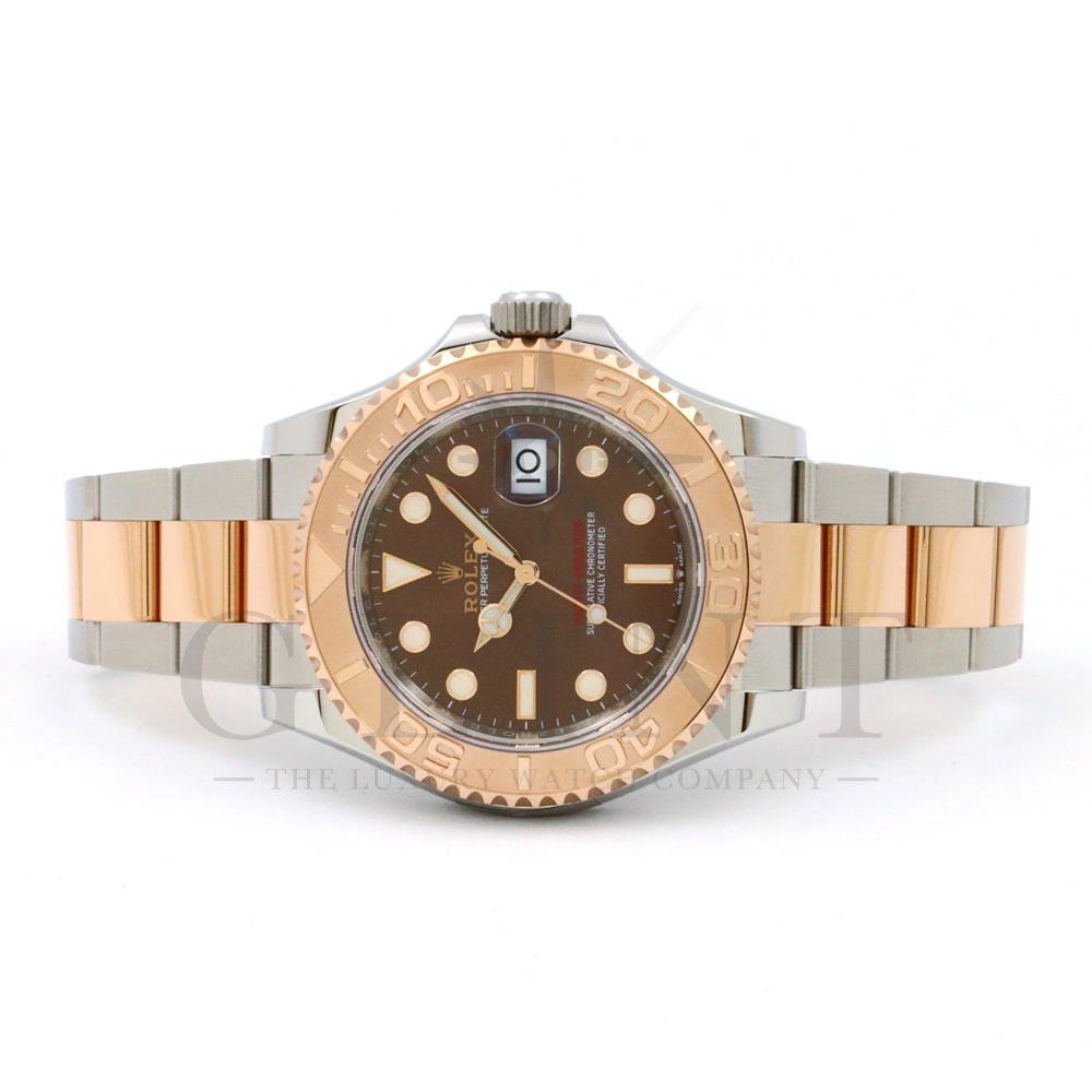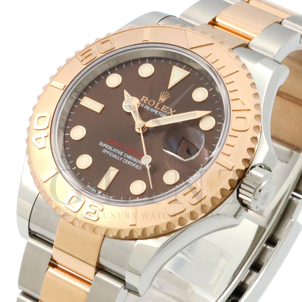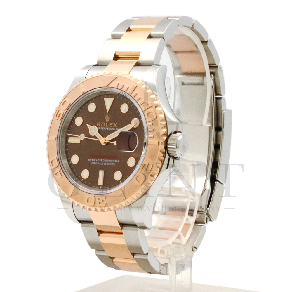 こちらはヨットマスター40 126621です。2019年に発表されたオイスタースチールとエバーローズゴールドのロレゾールモデルです。以前のモデルからは6時位置に王冠マークが足され、キャリバーがCal.3135からCal.3235に変更されました。ロレックスが特許を取得した“クロナジー・エスケープメント”と呼ばれる新しい脱進機を使用し、エネルギー効率を高めパワーリザーブが約70時間まで延長されております。更に進化したロレックスの人気モデルで腕元をラグジュアリーに演出してみてはいかがでしょうか。