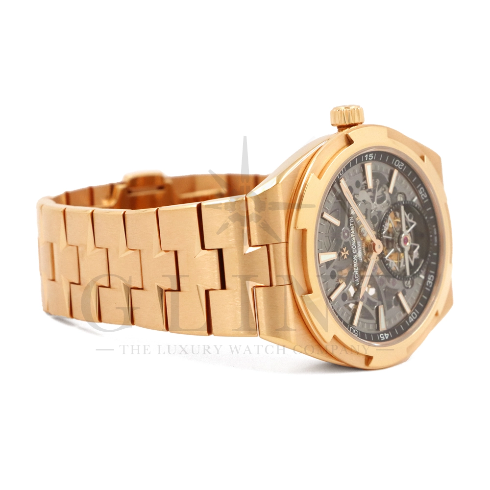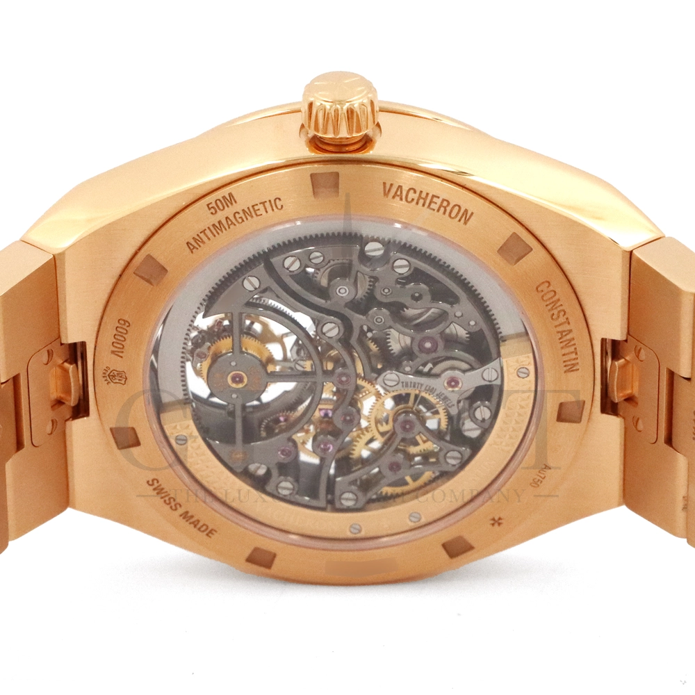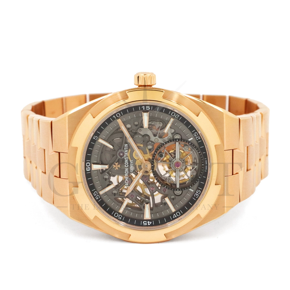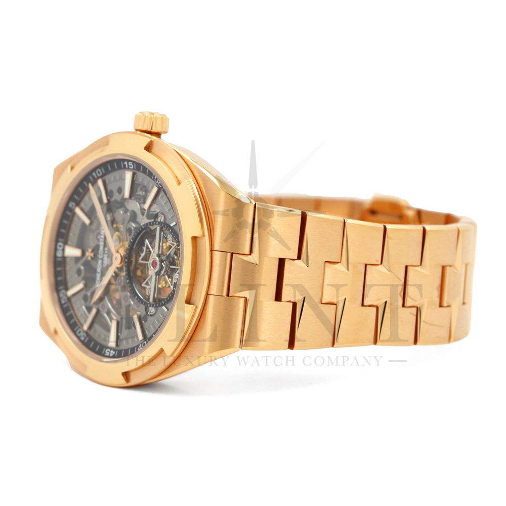 こちらはオーヴァーシーズ トゥールビヨン スケルトン 6000V/110R-B934です。2022年に「オーヴァーシーズ」コレクション初のスケルトン加工したトゥールビヨン・ムーブメントを搭載するモデルとして登場。オート・オルロジュリーの特徴的な手法に則りながら、現代的な感覚で手作業の仕上げが施された新しい自社製キャリバー2160 SQは、ひげゼンマイにブレゲ・オーバーコイルを採用するオリジナルの調速機を装備しています。香箱のオープンワークによって現れた方位図のような香箱蓋もヴァシュロン・コンスタンタンにとっては斬新なデザインです。「オーヴァーシーズ」コレクションの旅の精神に完全にマッチしながら、新しい風を送り込むこの時計は、ムーブメントとケースの仕上げにも細心の注意が払われています。手で再加工と仕上げが施されたひとつひとつの部品は、ヴァシュロン・コンスタンタンの時計のディテールの豊さと繊細さを際立てくれるでしょう。また、インターチェンジャブル・システムが採用されており、レザーとラバーによる2本のストラップが付属しています。世界三大時計ブランドの圧倒的な技術力を感じさせてくれる至極の一本です。