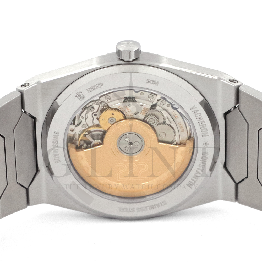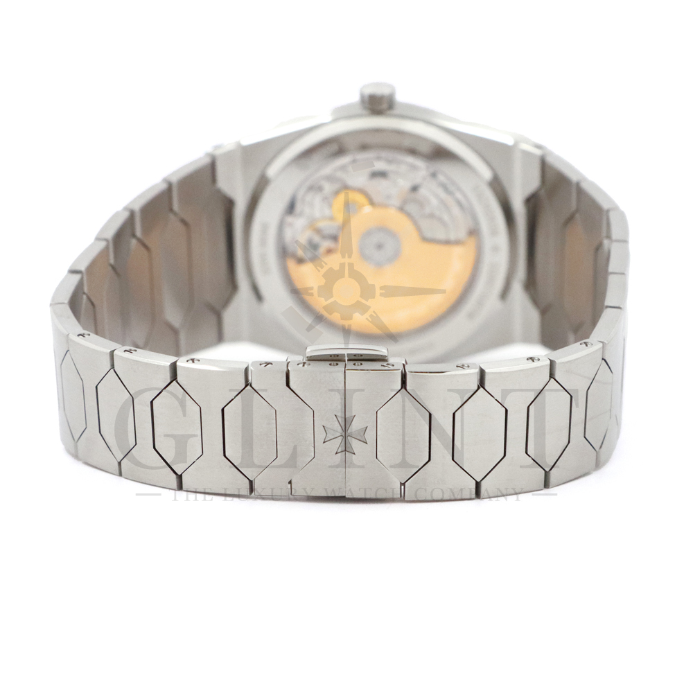 こちらはヒストリーク 222 ブティック限定モデルです。2025年に発表された新作のステンレスモデルが遂に登場。トノー型のモノブロック・ケースに溝付きのベゼルをあしらったこのタイムピースは、ブレスレットが一体化しているため、すっきりとした直線と繊細な曲線を備えており、これによって堅牢性、機能性、時代を超えたエレガンスを備えたスポーティーな精神を表現しています。ブレスレットは6角形のリンクを配したデザインとなっており、存在感が強調された頑強なイメージを演出。これらのディティールはヒストリークらしくオリジナルのジャンボ 222を踏襲したデザインです。美観へのこだわりは大いに発揮されており、リューズブレスはバーチカルサテン。ベゼルはサーキュラーサテン仕上げとなっております。このサテン仕上げにコントラストを持たせ、一体感のあるデザインから奥行きをもたらしてくれるでしょう。ヴァシュロンコンスタンタンの歴史を感じられる伝説的なモデルをぜひご堪能ください。