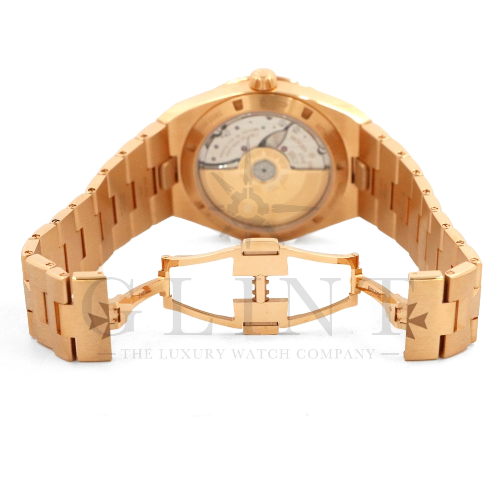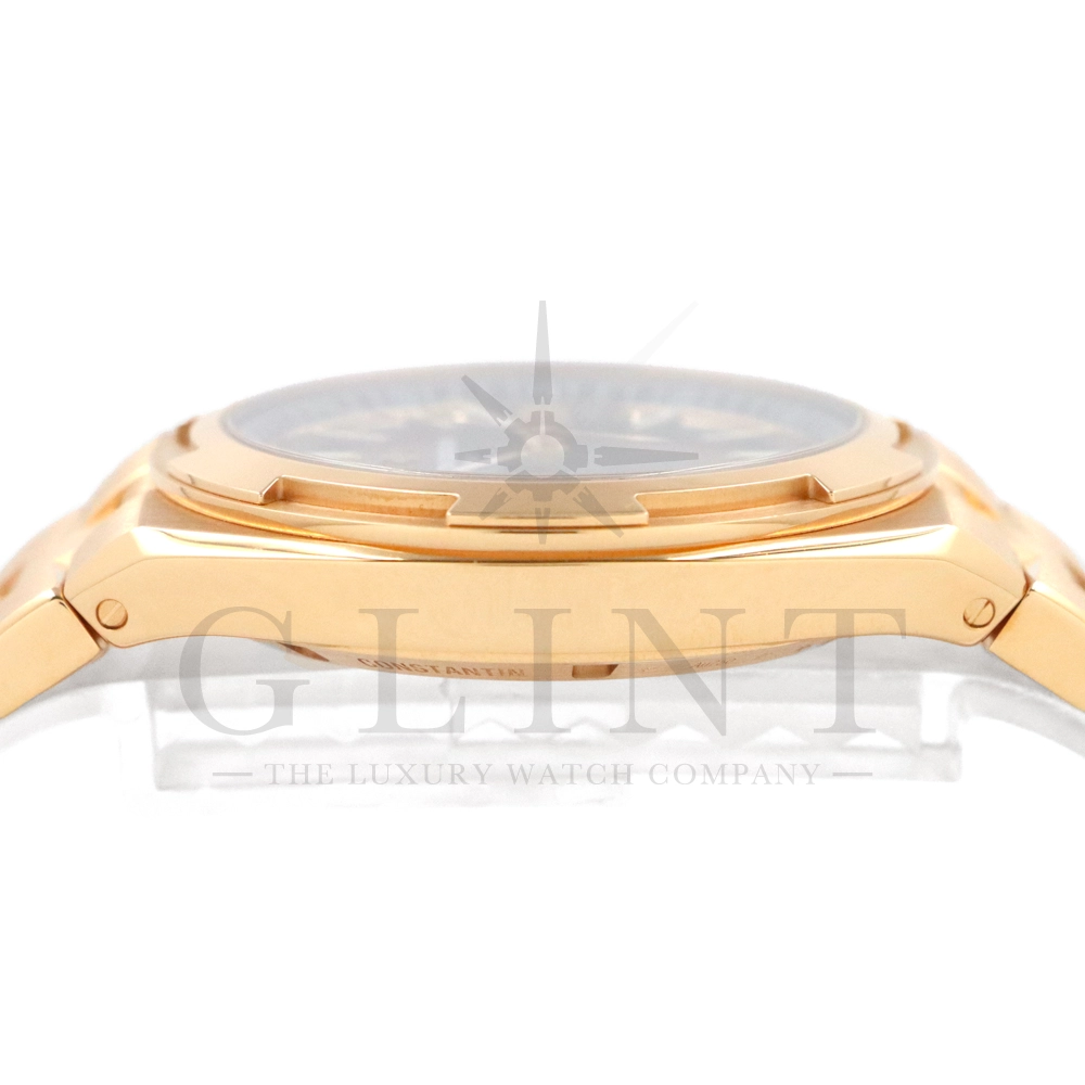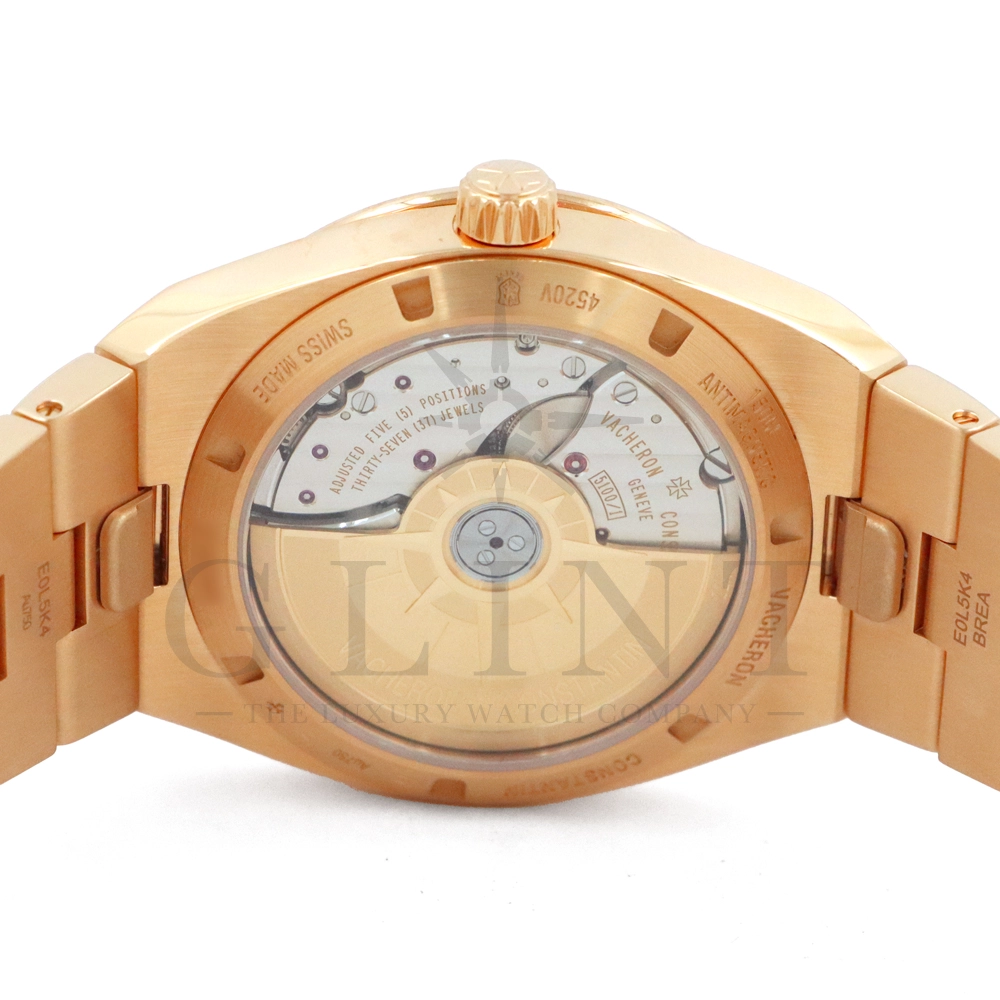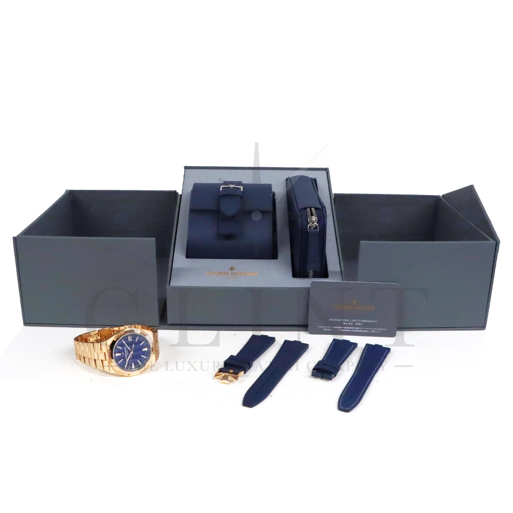 こちらはオーヴァーシーズ 4520V/210R-B705 ブティック限定モデルです。前作の4500V/110R-B705からマイナーチェンジし、2023年に登場した新作モデル。素材には18Kピンクゴールド、文字盤にはブラス(真鍮)素材の鮮やかなブルーカラーとなっており、非常に美しい色合いとなっております。ムーブメントには前作同様、ヴァシュロン・コンスタンタンが設計から開発、製造までを自社で完全に行ったCal.5100(ジュネーブ・シール取得)を搭載。また、インターチェンジャブル・システムによる交換時のボタンが改良された事で、よりお客様自身がベルトの交換を容易に行えるようになっており、バックルの仕様も変更されております。世界最高峰の技術が凝縮された腕元に身に着ける喜びを与えてくれる最高の逸品をぜひこの機会にご堪能ください。